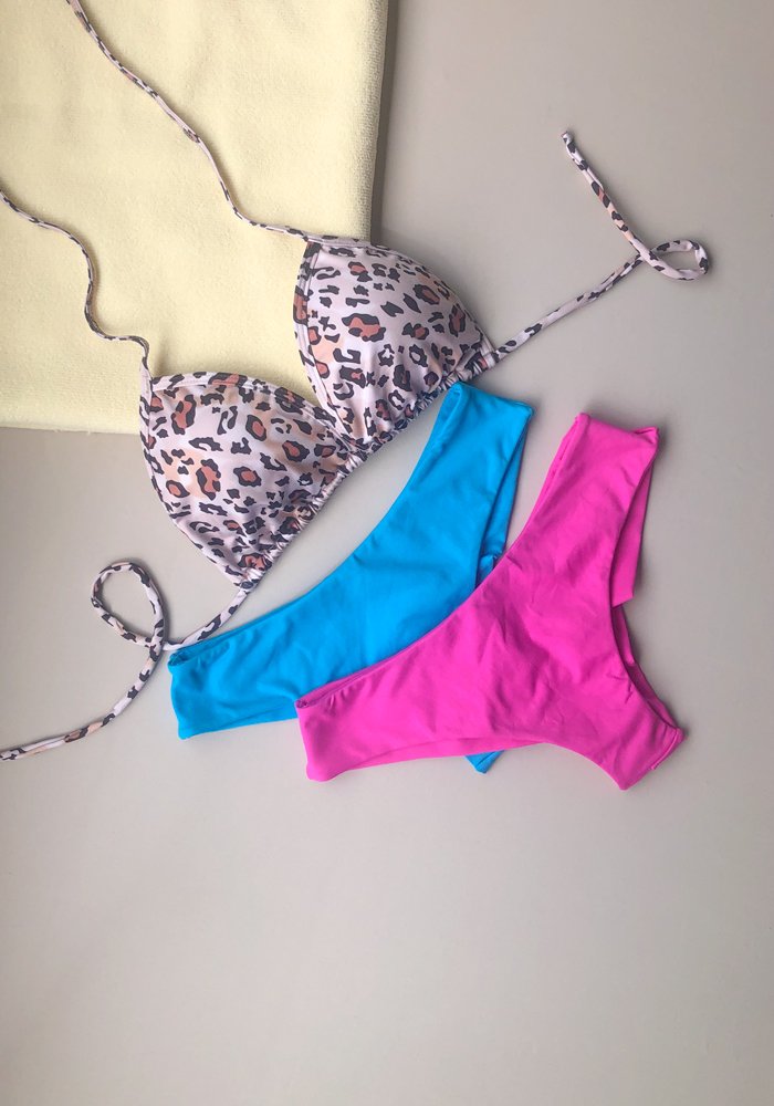 Conjunto montado cortininha com bojo + tanga barra larga fio duplo.
