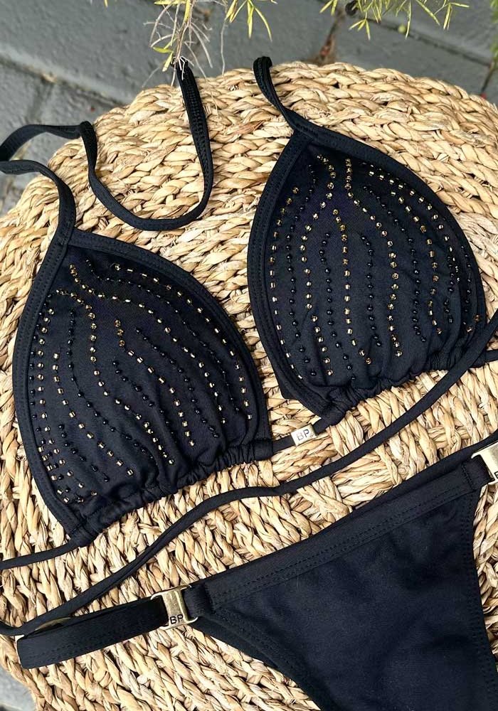 Top Biquíni Cortininha Bojo Removível Bordado Preto